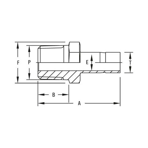 | Model No. | T Tube OD | P NPT Male | A | B | E min. | F A/F |